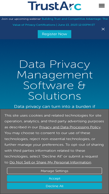 TrustArc bridges the gap between privacy and data for deeper insights, broader access, and continuous compliance. Contact us for more information!