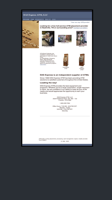 100%DAS Express ATM, LLC - Provides ATM machines,Bill Pay Kiosk and Merchant Account services including sales, service, repair, installation, and transaction processing. 1.800.209.7264