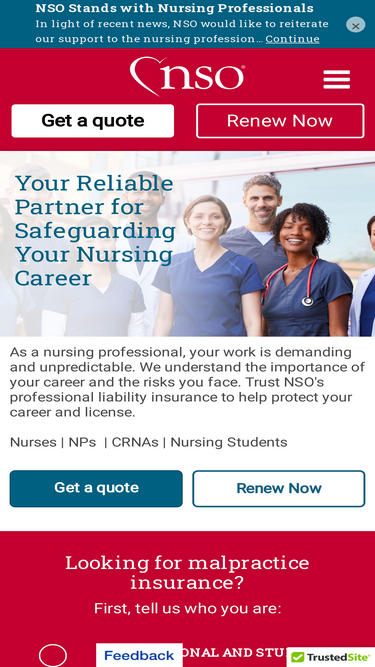 If you're looking for nursing malpractice insurance, NSO insurance can give you a fast and easy quote. Find out more about nursing liability insurance.