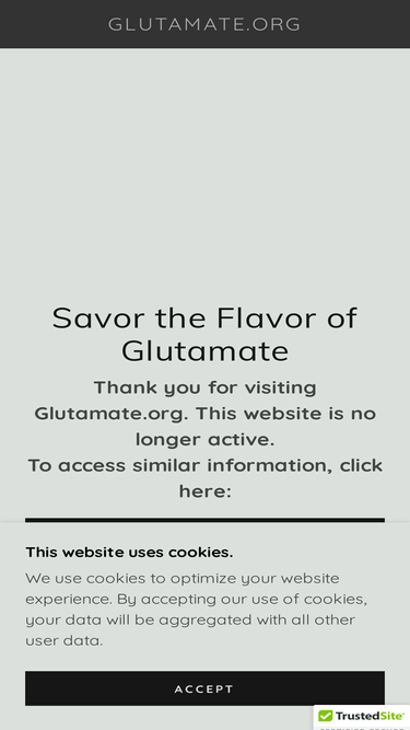 95%Thank you for visiting Glutamate.org. This website is no longer active. To access similar information, click here: