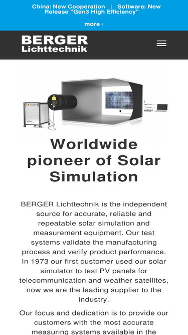 56%In 1960, Hans-Jürgen Berger developed and produced first photographic flashers. Since having sold the first flasher to the German space company MBB in 1973, the company continuously developed conventional high-power flashers into real solar simulators.