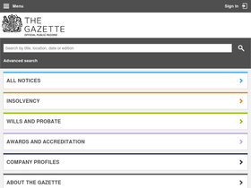 79%visit the gazette for insolvency data, public notices or honours and awards (for government, business or individuals). the archive is free to use right back to 1665. the gazette is the official newspaper of record in the united kingdom.