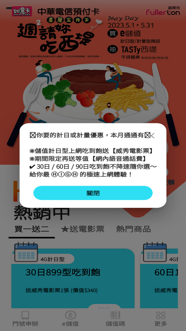 67%本網站提供中華電信預付卡(如意卡)申辦與儲值服務,提供4g/5g預付卡計日型、計量型商品線上儲值服務。預付卡儲值後可進行通話語音與行動上網服務,線上立即儲值延長門號效期,加入網站會員、上傳學生證件可享有更多預付卡儲值/申辦優惠!