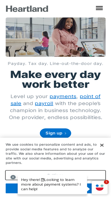 77%get powerful business technology solutions that help you make the sale, keep your customers happy and get your money faster. heartland’s powerful point of sale, payments and payroll technology suite is at your fingertips.