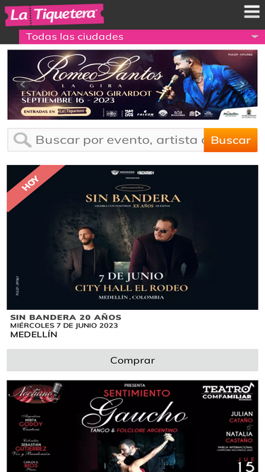 86%venta de entradas para los mejores espectáculos. busca y encuentra entradas para los próximos conciertos, eventos deportivos, obras de teatro, culturales, familiares, congresos y eventos especiales. compra tus entradas en linea o cualquiera de nuestros puntos de venta autorizados.