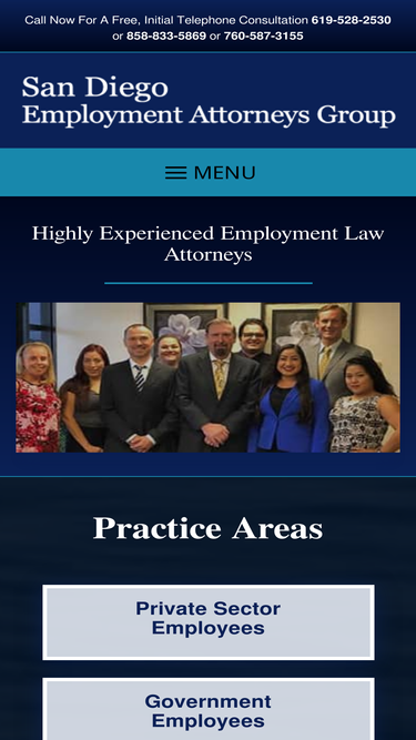 100%the lawyers of san diego employment attorneys group in california have 100 years of combined employment law experience. call 619-626-2084 for a free consultation.