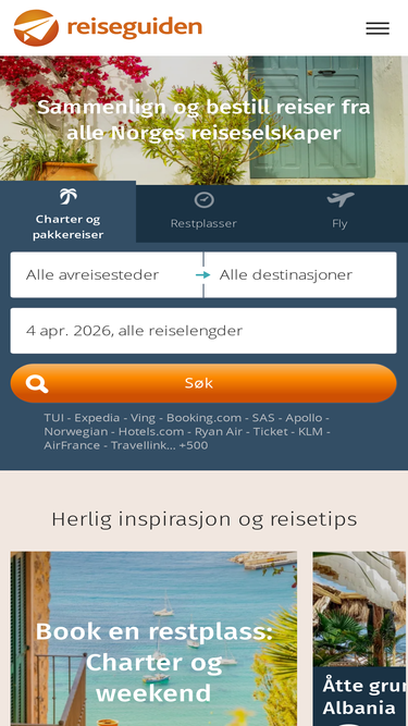 90%Sammenlign charter- og pakkereiser, fly og hotell på ett sted. Her finner du alle de store reisearrangørene.