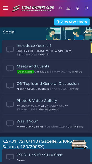 94%This is an International club for the benefit of all Nissan Silvia Owners. From the CSP311 to the S15, the club has been designed with you all in mind. Extensive List: Datsun 1600, Gazelle, Sakura, CSP311, S10, S110, S12, S13, S14, S14A, S15