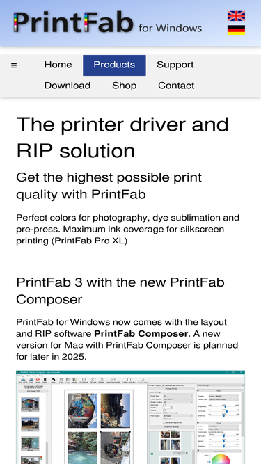 88%Die perfekte Drucklösung für Foto-, Fineart-, Dokumenten- und Proofdruck mit Farbprofilierung, Druckvorschau mit Softproof und mehr. PrintFab ist unsere Druckertreiber-Suite mit RIP Funktionalität.