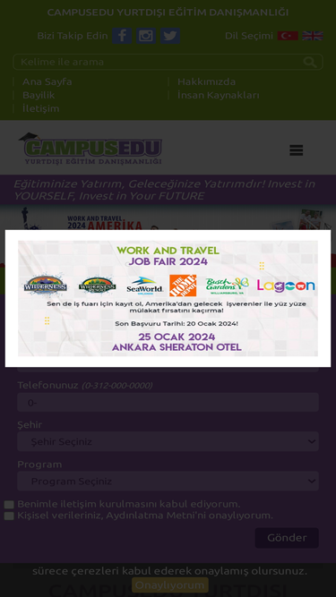 99%campusedu yurtdışı eğitim danışmanlığı work and travel, yurtdışında dil okulları, yurtdışında dil eğitimi, yaz okulları, internship/turizm stajı, yurtdışında staj, diploma ve sertifika, yurtdışında üniversite gibi yurtdışı eğitim programlarıyla profesyonel hizmet vermektedir. kendinize yatırım, geleceğinize yatırımdır, yurtdışı eğtimde campusedu farkı.