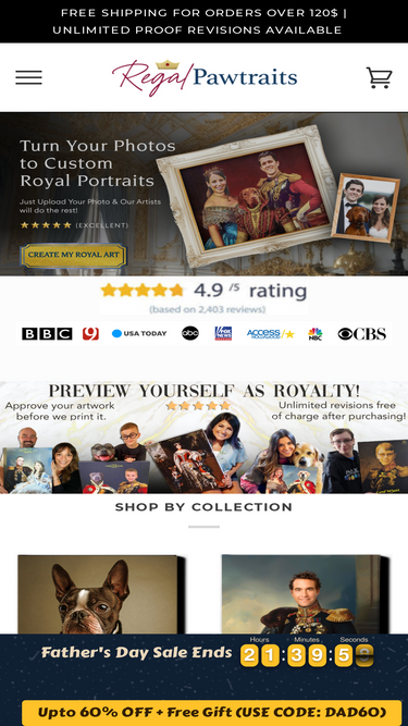 100%Have you ever wondered if it's possible to Turn Me into a Royal Portrait? Make your loved ones gasp in surprise when you gift them a custom royal portrait! Regal Pawtraits is an art house to make you royal into personalized historical paintings. Unlimited Revisions.10,000+ Happy Customers. 24x7 Customer Service.