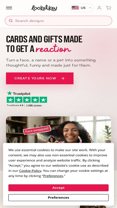 73%Create personalised greeting cards and wall art using our AI face swap technology. Transform your selfies into unique masterpieces by seamlessly adding your likeness to our designs. Perfect for gifts, birthdays and special occasions.