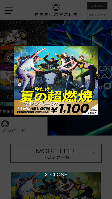 87%暗闇バイクエクササイズFEELCYCLE(フィールサイクル)へのお問い合せはこちら。