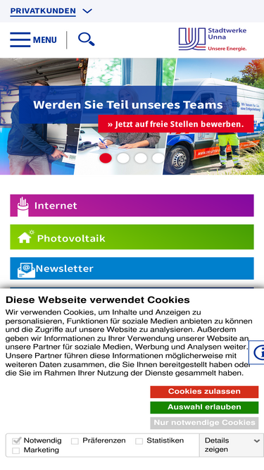 74%volle energie für unna: ökostrom, erdgas, wärme, photovoltaik, heizung, elektromobilität, glasfaser und highspeed-internet.