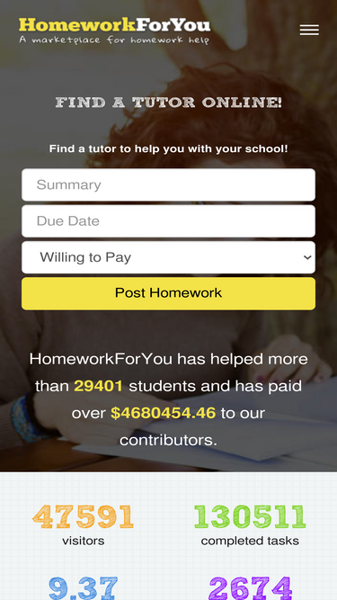 73%Post your homework, get expert bids, pay after you receive help. Affordable tutoring for math, essays, coding, and more.