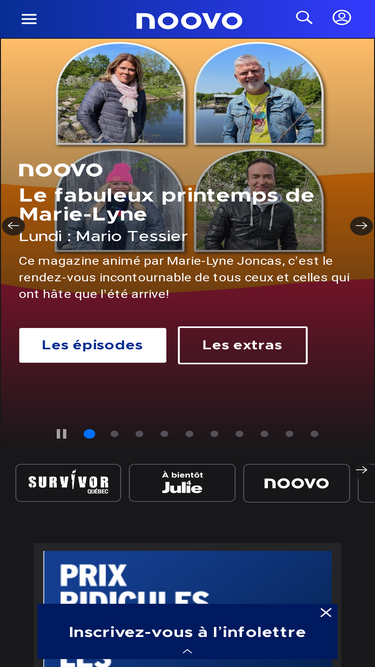 85%Toutes les émissions des chaînes Noovo, Canal Vie, Canal D, Investigation et Z, en plus de plusieurs contenus inédits, en un seul endroit! Regardez les saisons d'Occupation Double, Big Brother Célébrités ou encore L'amour est dans le pré...
