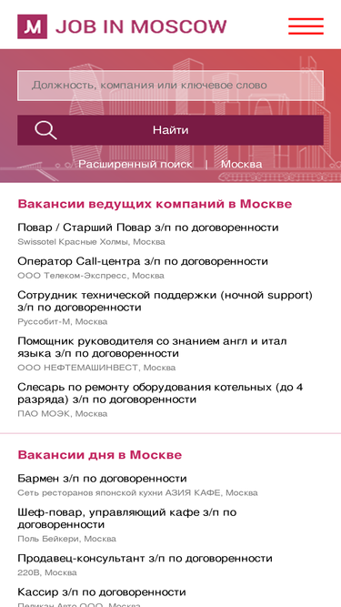 Простой и удобный поиск работы, все вакансии в Москве, только проверенные работодатели. Найти работу легко — Rabota.ru устраивает всех!