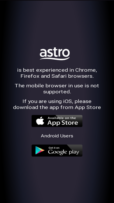 100%Get Astro today! Watch your favourite TV Shows and Movies On Demand plus LIVE Sports and Events on your mobile, tablet & desktop anytime, anywhere