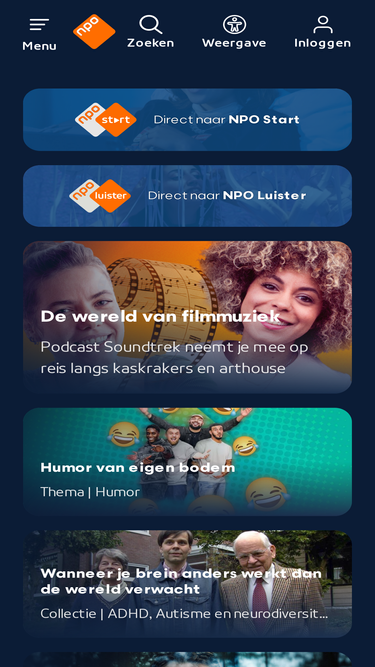 92%Start programma's waar en wanneer je maar wilt op NPO Start. Met een plus abonnement kijk je zonder reclame alle afleveringen van je favoriete Nederlandse series.