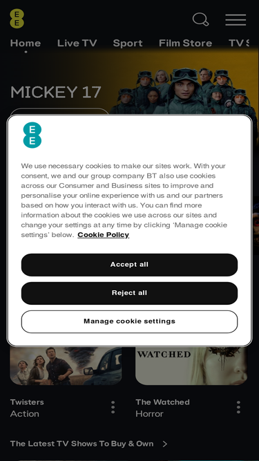 94%log into your ee tv account to watch the latest tv, sport and buy or rent the latest movies with the ee tv player.