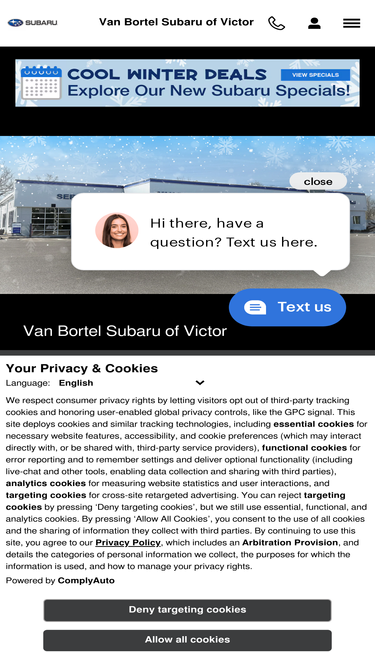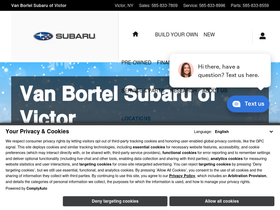92%choose van bortel subaru of victor for your next new subaru, quality used car, or subaru service visit. serving our friends and neighbors since 1991, we believe in building lifelong relationships with our customers and being a positive force in our community. visit our subaru dealer today!