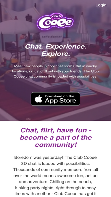 72%club cooee is a free 3d chat community. meet & chat with new friends. dress up your 3d avatar. create and decorate your 3d chat rooms. play games.