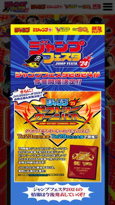 80%週刊少年ジャンプ・少年ジャンプ+・Vジャンプ・ジャンプSQ.・最強ジャンプが贈る、マンガ・アニメ・ゲーム・ホビー全部楽しめる「ジャンプ」の一大エンタメイベント「ジャンプフェスタ」。2025年12月20日(土)・21日(日)に幕張メッセで開催!