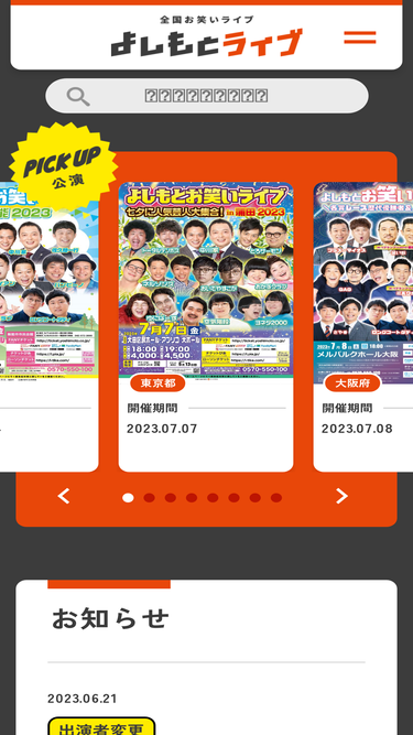 68%よしもとライブWEBサイトリニューアル!。よしもとライブWEBサイトがリニューアルいたしました!URLが変更になっておりますので「お気に入り」「ブックマーク」などに登録されている場合は、新しいURLへの変更をお願いいたします。https://...。