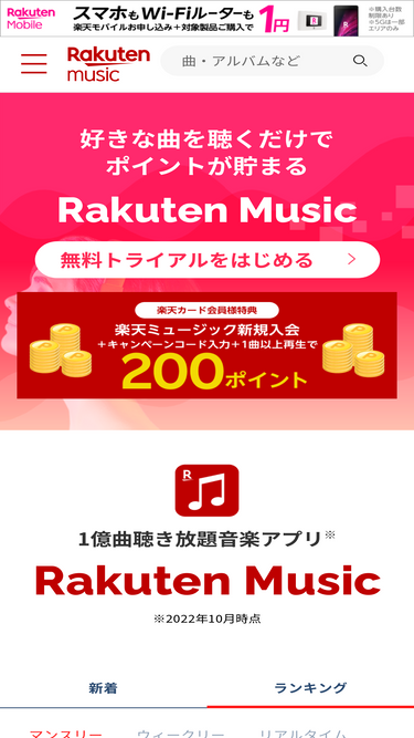 96%Rakuten Music(楽天ミュージック)は、月額780円から楽しめるコスパ最強の音楽サブスク。最新の人気ランキングからおすすめの名曲・豊富なプレイリストまで、すぐに無料体験可能!