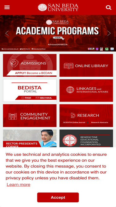 72%San Beda University is a private Roman Catholic University administered by Benedictine monks in the Philippines. Tertiary education and senior high school are offered in its main campus in Manila while Integrated Basic Education is provided in its campus in Rizal.