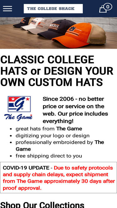 74%snapback hats from the game - 100s of college bar hats. greek and lacrosse. or get a custom hat with super low minimums and great prices.