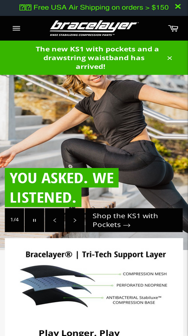 82%Discover Bracelayer supportive compression gear, designed to improve knee stability and balance while reducing joint pain through targeted knee compression. Our unique designs incorporate medical grade, perforated neoprene compression knee braces into athletic compression pants. Stay active longer with Bracelayer.