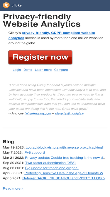 91%clicky's privacy-friendly, real-time website analytics service is simply the best way to monitor, analyze, and react to your website's traffic in real time.