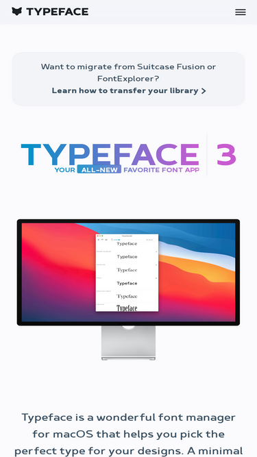 96%Typeface is a wonderful font manager for macOS that helps you pick the perfect type for your designs. With a minimal interface and total focus on your fonts browsing your collection becomes a delightful experience. And new powerful font management features let you effortlessly organize even the largest libraries.