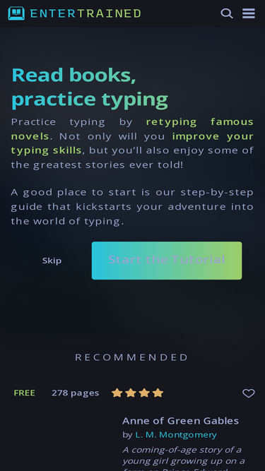 85%Practice typing by retyping entire books. Improve your speed with 100+ classics and real-time WPM tracking. Free forever.