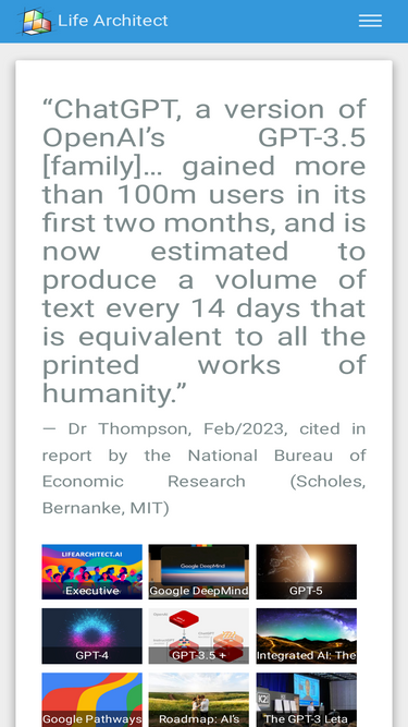 85%The image above was generated by AI for this paper (Midjourney v5.2) Alan D. Thompson June 2023 Download original article with all footnotes/references Integrated AI: The sky is entrancing (mid-2023 AI retrospective) (PDF) Watch the video version of this paper at: https://youtu.be/RnkyM74-LAw [By the year 2023], we will have the technological means to create superhuman [...]