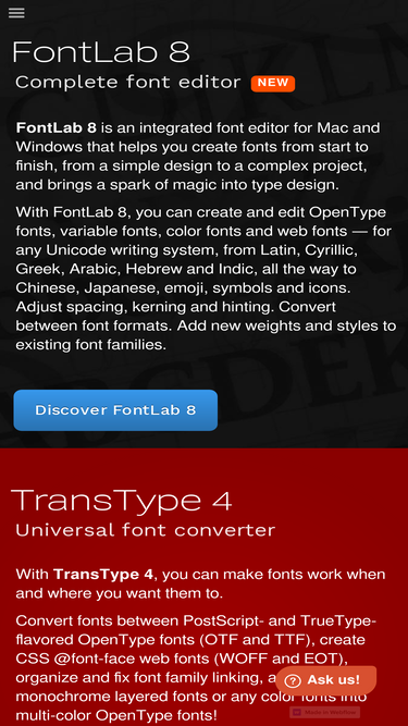 86%Fontti -apuohjelmat, tekijä Fontlab Ltd.