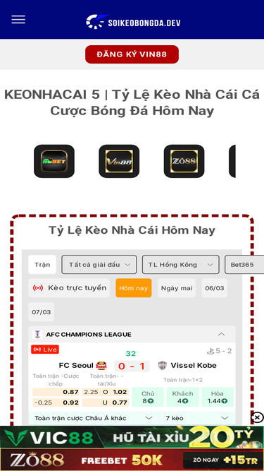5%Keonhacai hay Kèo nhà cái 5 chuyên cập nhật tỷ lệ kèo mới nhất và các nhà cái cá cược uy tín. Click xem tỷ lệ kèo mới nhất.