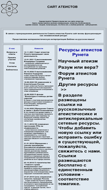 100%сайт посвящен атеизму, религиям и философии в россии. статьи обсуждения и проекты.