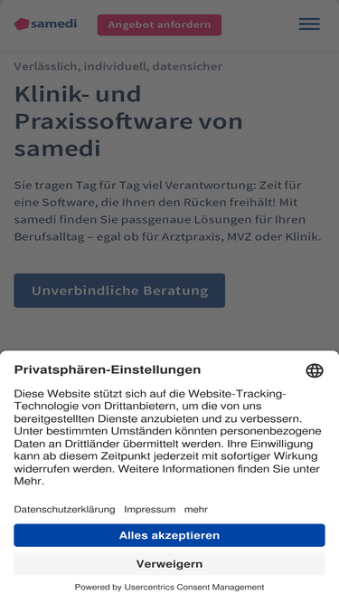 76%Mit samedi Ihr Team entlasten! Finden Sie passgenaue Software-Lösungen für Praxis, MVZ oder Klinik – von Online-Terminvergabe bis Patientenportal.