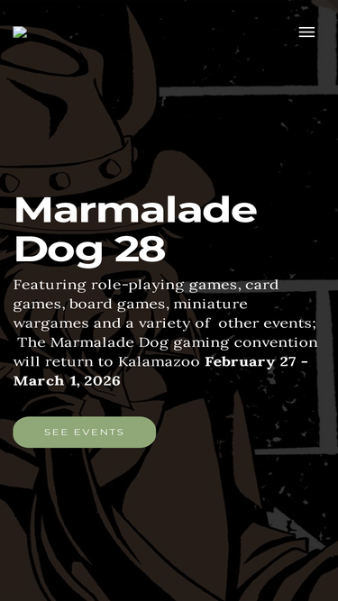 95%marmalade dog is a gaming convention held each year by the western michigan gamers guild (wmgg) on the campus of western michigan university in kalamazoo, michigan. marmalade dog features role-playing games, collectible card games, miniature war games, board games, special events and guests.