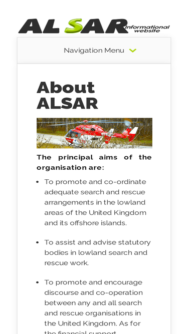 99%Welcome to ALSAR informational website. Our aim is to provide you an information about the search and rescue teams in UK...