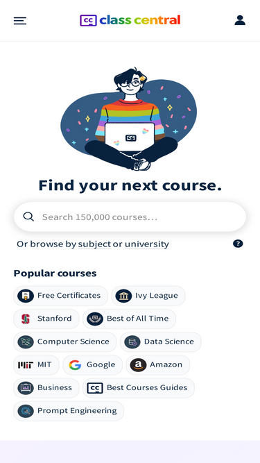 63%Class Central aggregates courses from many providers to help you find the best courses on almost any subject, wherever they exist.