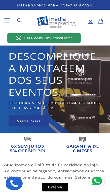 34%O balcão portátil mais robusto da categoria! Sua mídia em tecido sublimado, é impresso em alta resolução e permite que seja lavado sem prejuízos à cores e ao tecido.Transporte e guarde sem dificuldades, cabendo em qualquer espaço quando desmontado. Dúvidas: Qual o tamanho do Balcão? O Balcão tem 100 cm de altura x 83 cm de largura e 53 cm de profundidade| peso: 9,5 kg De que material é feito? O tampo e a base são feitos com o mesmo MDF revestido usado em móveis planejados, sua estrutura é em Tubos de Alumínio e a Mídia é em um elegante Tecido vestível como em toda Linha Fabric. O que está incluso no valor? Você receberá o balcão promocional personalizado com a sua arte em tecido e uma bolsa em corino para armazenamento. Gabarito: Balcão ↓ Tensaflex