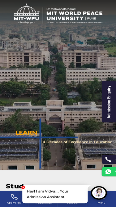 79%If you are looking to reach MIT WPU through phone or email, reach us for voice call at +91 20 –7117 7104 or +91 20–7117 7105, WhatsApp message at +919881492848 or write to us at admissions@mitwpu.edu.in. You can also visit our campus at S.No.124, Paud Road, Kothrud, Pune.