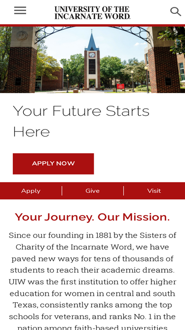 91%university of the incarnate word (uiw), the largest catholic university in texas, is committed to challenging students to think critically with their education and to leverage their god-given talents to make positive impacts.