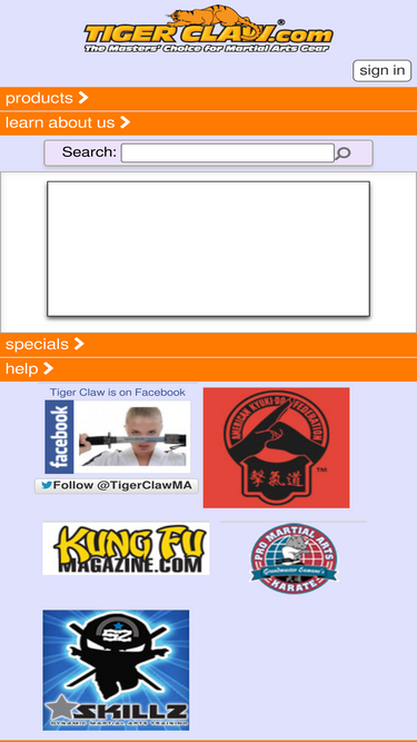 89%tiger claw is a high-end manufacturer and distributor of martial arts supplies. the tiger claw product line covers all areas of martial arts supplies from protective gear to uniforms to swords. tiger claw operates facilities in fremont, california and knoxville, tennessee. tiger claw also publishes claw marks-the largest circulation martial arts business newsletter in america, and the popular newsstand magazine kung fu tai chi.