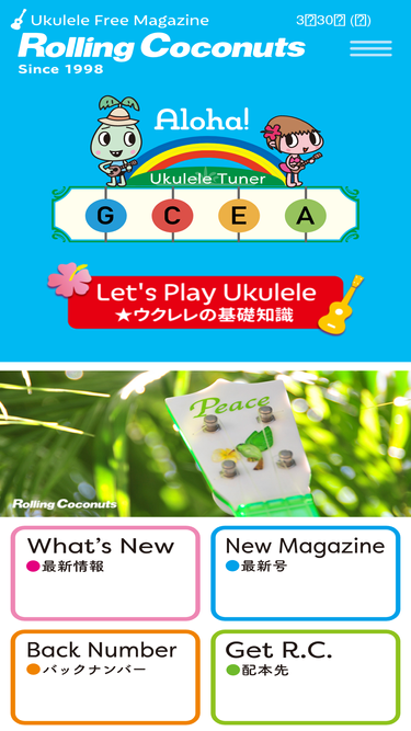 85%1998年の創刊以来、年4回発行されているウクレレフリーマガジン「rolling coconuts(ローリングココナッツ)」のオフィシャルサイト。最新号、バックナンバー、全国の配本先の情報、ウクレレチューナー、ウクレレ基礎知識、ウクレレ写真館など。本誌と連動したウクレレ企画も随時アップ。