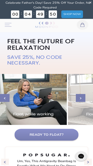 88%Upgrade your downtime with Moon Pod’s zero-gravity bean bags. Enjoy unparalleled comfort and support for all your relaxation needs. Order now for 25% off.