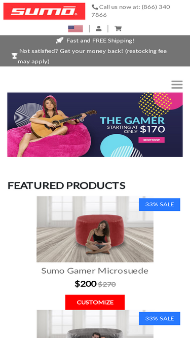 83%Sumo Gigantor - The Best Beanbag Chair What can we really tell you about this giant beanbag chair? It's right there in the name, Sumo Gigantor. This beanbag chair is huge, enormous, dare we say gigantic. We should probably classify this product as a giant bean bag couch, rather than just a chair. Looking for larger than life furniture? You've found it! Sumo Giant Bean Bags Conquer Our Big Beanbag Chairs measure 6ft diameter x 3ft high Weight: 80 Pounds Removable micro-suede cover zips off to machine wash Many hugely popular color choices for your giant bean bag chair Stays fluffy and full, will never go flat Our gigantic bean bags are made with 100% Superior SumoFoam Get free shipping on this giant beanbag chair and $400 off our competitors' price (yeah, ours are better than LoveSac bean bag chairs). The Sumo Gigantor kind of makes you think that regular couches are for suckers. Pick up one or more giant bean bags today and become the envy of loved ones and friends.